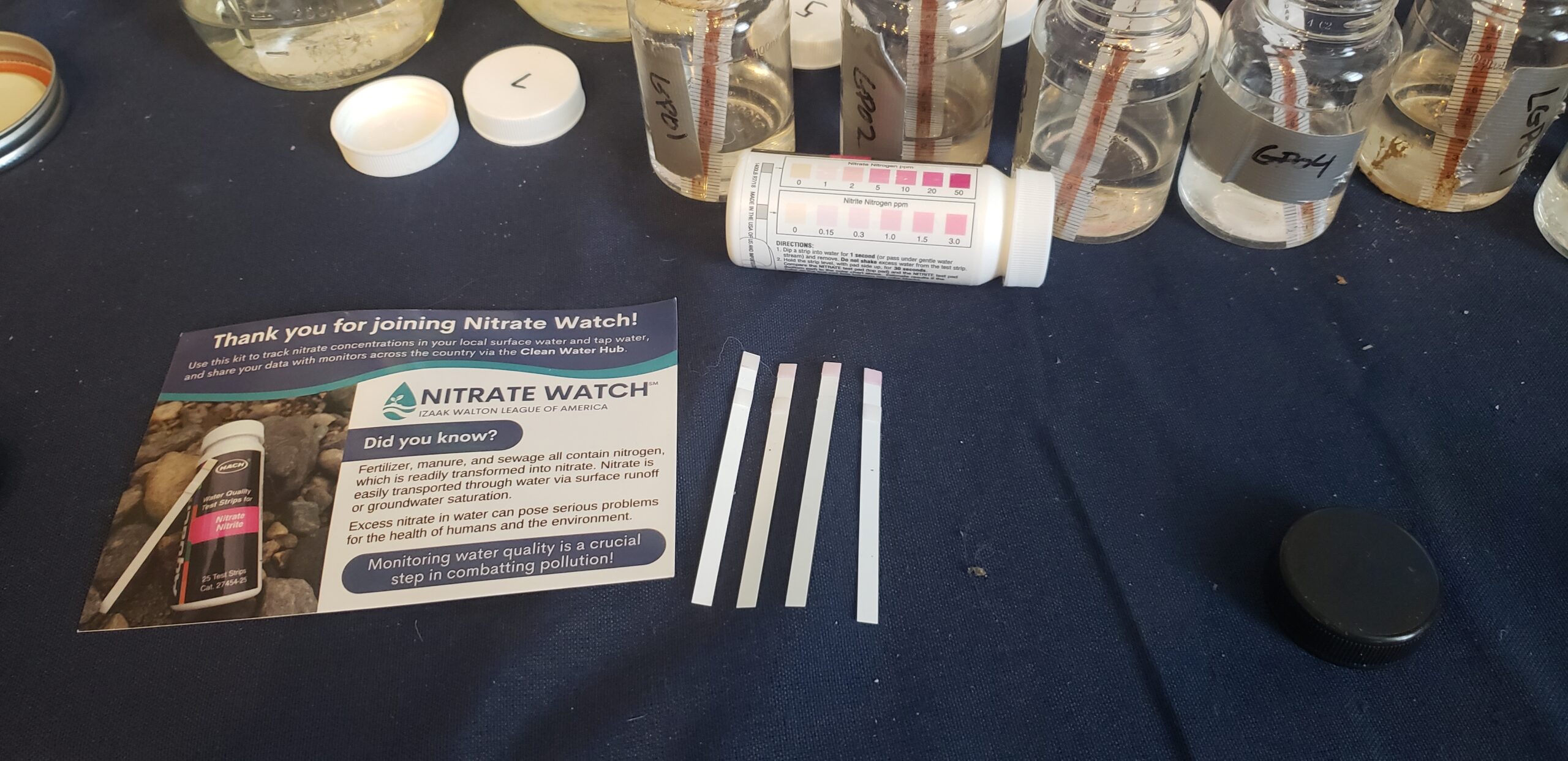 The goal of nitrate watch is to provide organizations and community residents with test kits that allows anyone to go to their favorite fishing or swimming hole to test for nitrogen. Nitrogen can come from a number of places, some of which can be tricky to track down. Identifying if Nitrogen is present or not can help determine potential sources and more importantly potential solutions.