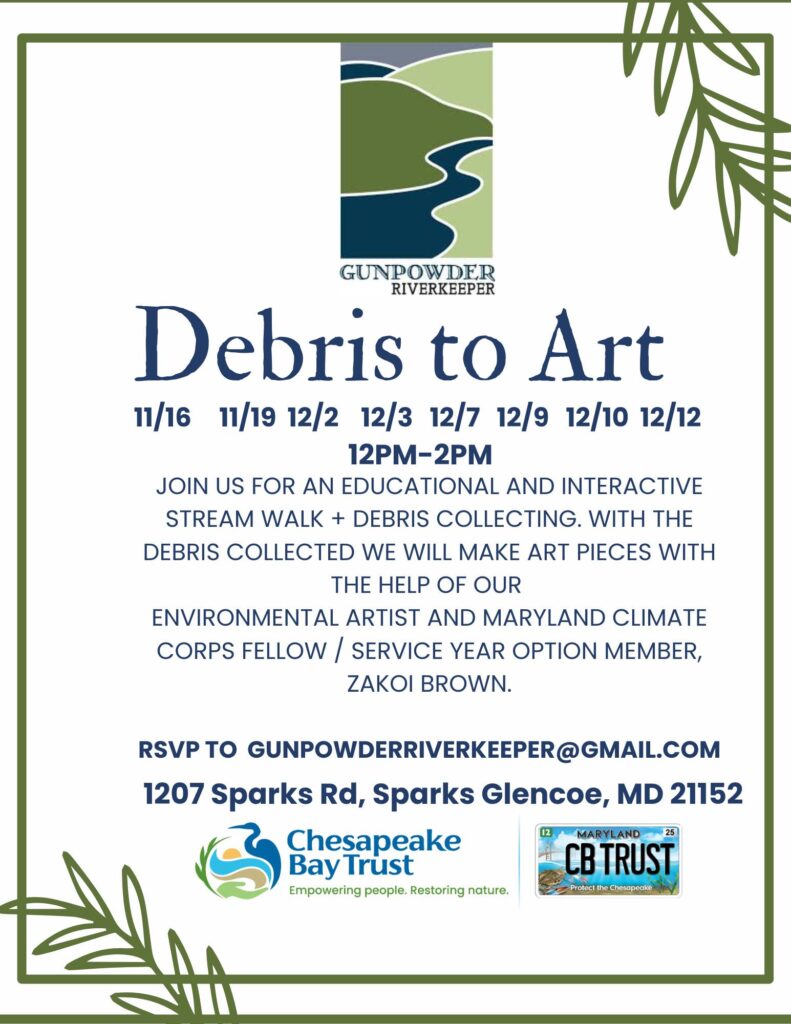 At the Sparks Bank Nature Center, learning happens through hands-on experiences, creative workshops, and time spent outdoors. Our educational events are designed to connect community members of all ages with the Gunpowder River through art, exploration, and environmental action. Whether you’re making a terrarium, cleaning a stream, or transforming trash into art, there’s always something meaningful happening here.