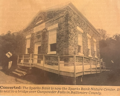 Built in 1916, the Sparks State Bank originally served the rural community of Sparks and travelers on the Northern Central Railroad. It stood beside the town’s post office and general store, forming a small commercial hub along the tracks.