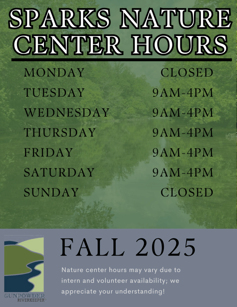 Gunpowder RIVERKEEPER® operates out of the Sparks Nature Center, a space uniquely situated along the TCB (Torrey C. Brown) Trail and beside the Big Gunpowder River. Housed in a historic bank building, the center serves as both our organizational headquarters and a hub for environmental outreach, community engagement, and scientific monitoring.